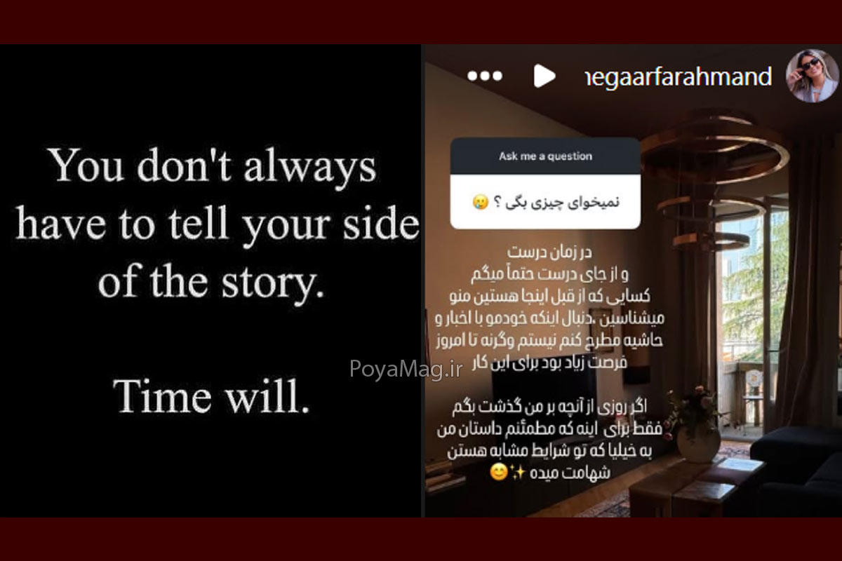 «در زمان درست و از جای درست حتما میگم. کسایی که از قبل اینجا هستین منو میشناسین. دنبال اینکه خودمو با اخبار و حاشیه مطرح کنم نیستم و گرنه تا امروز فرصت زیاد بود برای این کار.»