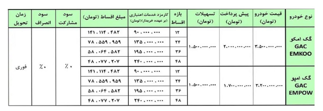 در این طرح، دو خودروی منتخب گک با شرایط ویژه اقساطی عرضه میشوند. خریداران میتوانند بدون پرداخت کامل وجه نقد، خودرو را تحویل گرفته و طی اقساط بلندمدت، مبلغ آن را پرداخت کنند.
